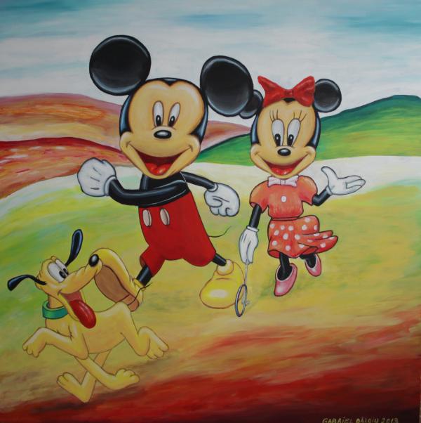 Mikey, Minnie si Pluto intr-un peisaj de vis, 100x100 cm.