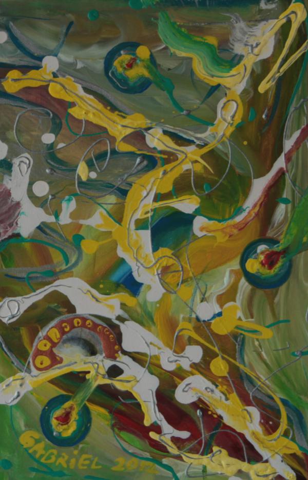 Mica lucrare decorativa 20x30 cm. Culori acrilice pe panza finisata cu vernis.
