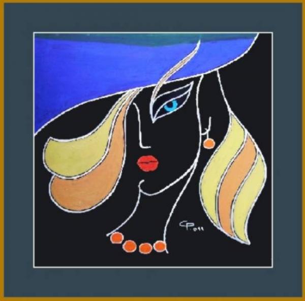 LUCRARE IN ACRIL PE CARTON,RAMA ,PASSEPARTOUT,STICLA