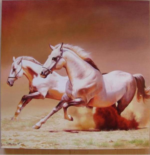 Calul este un animal superb,cu o forma aerodinamica extraordinara: Imi place enorm sa pictez cai. Am incercat sa redau prin forma si culoare, naturaletea miscarii... ca am reusit sau nu Dvs. decideti !