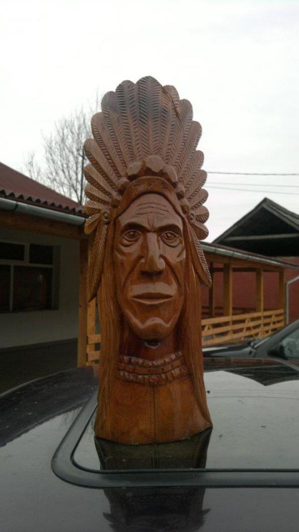 lucrarea este executata din lemn masiv de prun, pastreaza culoarea naturala a prunului deoarece nu a fost data cu bait