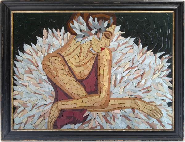 Lucrare realizata in tehnica mozaicului, din sticla venetiana. Dimensiune 29 x 42 cm.Pret actual : 156 €