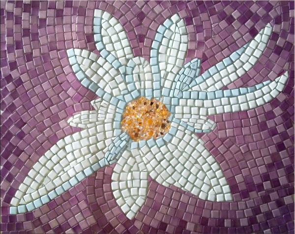 Lucrare realizata in tehnica mozaicului, din sticla colorata. Dimensiune 40 x 45.