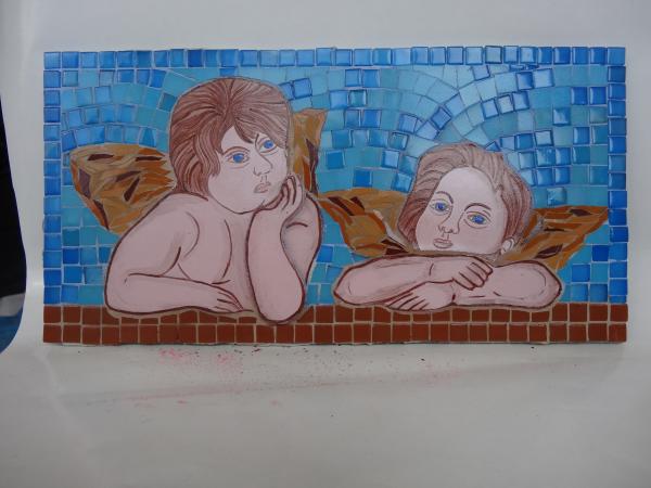 Lucrare realizata in tehnica mixta: mozaic combinat cu sticla pictata fuzionata. Dimensiune 15 x 23 cm. Pret actual : 80 €