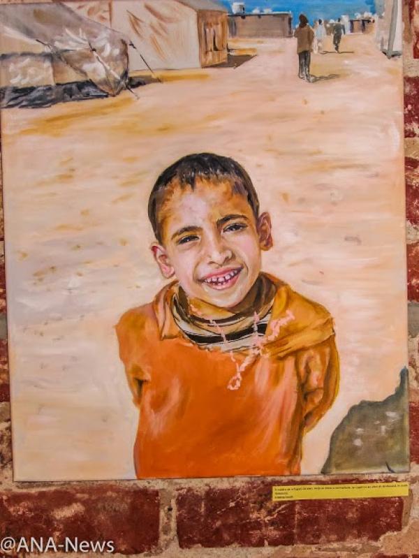 Imaginea este pictata ca urmare a vizitei in tabara de refugiati sirieni Zaatari, a doua cea mai mare din lume, devenita un adevart oras in nordul Iordaniei. Am pictat dupa o fotografie facuta in timpul vizitei in Zaatari din octombrie 2013.