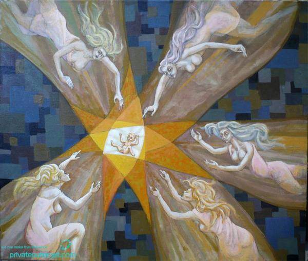 GHEORGHE FIRICA - \"Ursitoarele\" Thnica: ulei pe panza Dimensiuni: 100 x 115 cm Anul: 2009