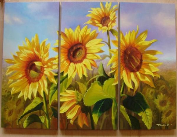 Un tablou original din trei elemente, care transmite multa caldura,relaxeaza si lumineaza incaperea !Pret actual : 125 €
