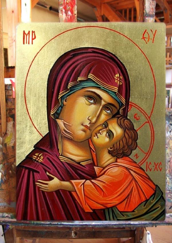 Icon 40x30 cm, painted and treated wood inserts not sag over time, with golden, lake protection \"Verni\" high quality execution and finesse!Pret actual : 100 €