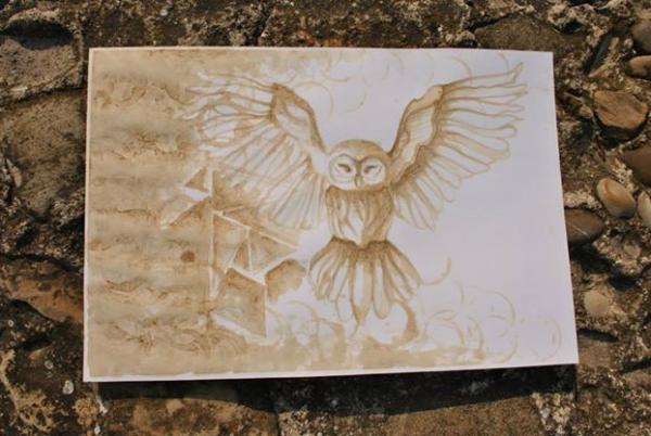 Materialele folosite sunt cafeaua si creionul, pe suport de hartie de 300g/m2, format A3.