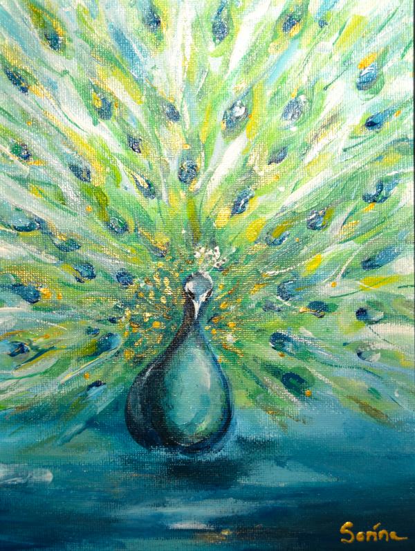 \"Peackok\" este un tablou abstract cu un paun, intr-o postura eleganta. Prin culorile alese - verde intens, bleu turcoaz si auriu, acest tablou este perfect ca decor intr-un interior modern.