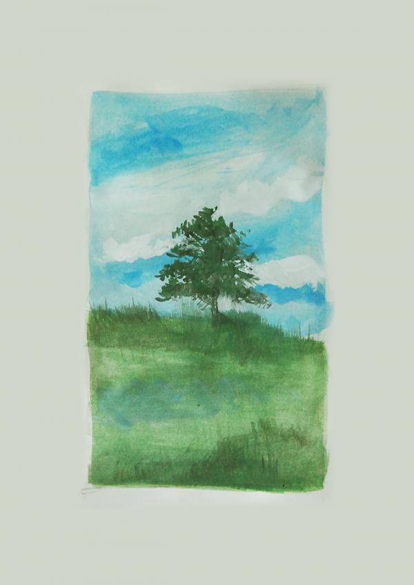 pictură realizată în culori tempera pe hârtie. imagine văzută pe meleagurile teleormanului în satul Băneasa