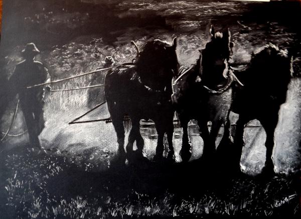 Pastel 40x30 cm Inramat- rama lemn, negru, 50x42 cm, passepartout alb, sticla Unicat
