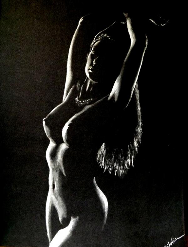 Pastel 40x30 cm Inramat- rama lemn, negru, 50x42 cm, passepartout alb, sticla Unicat