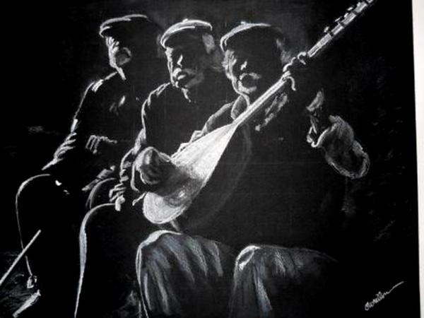 Pastel 40x30 cm Inramat- rama lemn, negru, 50x42 cm, passepartout alb, sticla Unicat