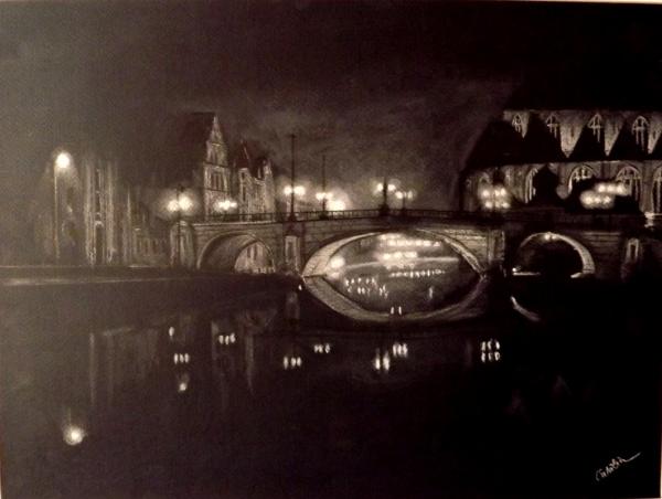 Pastel 40x30 cm Inramat- rama lemn, negru, 50x42 cm, passepartout alb, sticla Unicat
