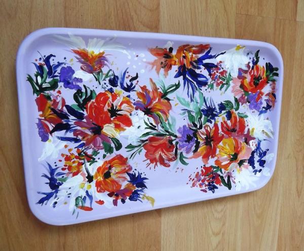 CERAMICA PICTATA DECORATIVA . PLATOU 29,5 X 19 CM CERAMICA ITALIA. PICTURA MANUALA ACRYLIC. UNICAT. LACUIT
