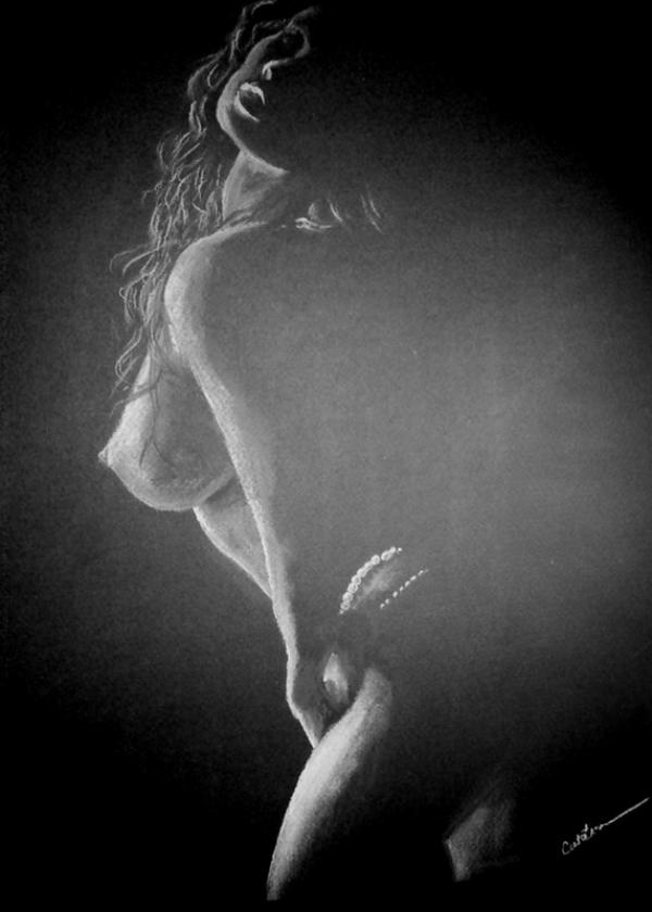 Pastel 40x30 cm . Inramat- rama lemn, negru, 50x42 cm, passepartout alb, sticla . Unicat