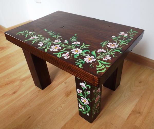 MASUTA CAFEA LEMN MASIV .REALIZAT MANUAL, LACUIT PICTAT .ACRYLIC, MANUAL UNICAT. 50X34X32 CM