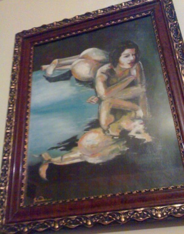 pictura ulei,60/45 cm,reprezentand un nud,reflectat in apa ca o sirena