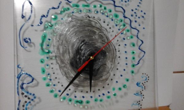 Ceas pictat pe sticla,dimensiune 25x25 cm.
