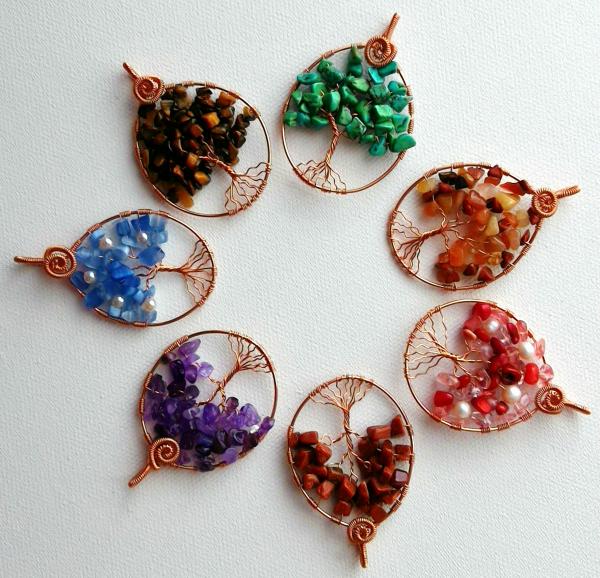 Pandantive confectionate manual din sarma de cupru si diferite pietre semipretioase. Foto( ametist, ochi de pisica, ochi de tigru, turcoaz, cuart roz, coral rosu, perle de cultura, piatra soarelui)