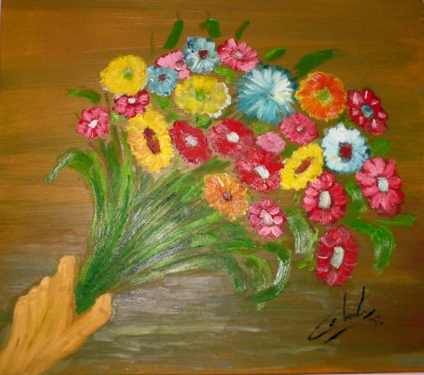 Vaza cu trandafiri / ulei pe carton