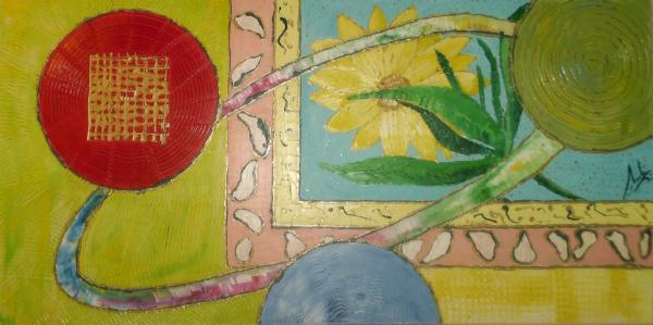 Ulei pe panza, tehnica cutit / mixta. Dimensiuni 100cm / 50cm.