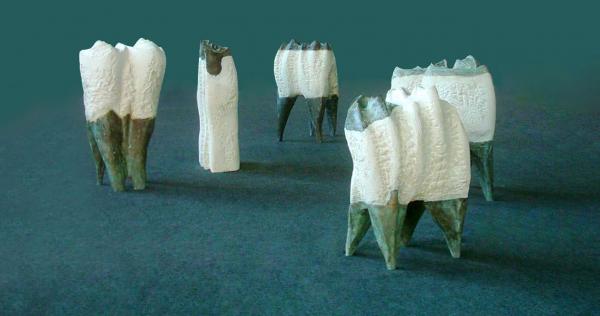 Bronz patinat si piatra, 6 piese, aprox 50x40cm.