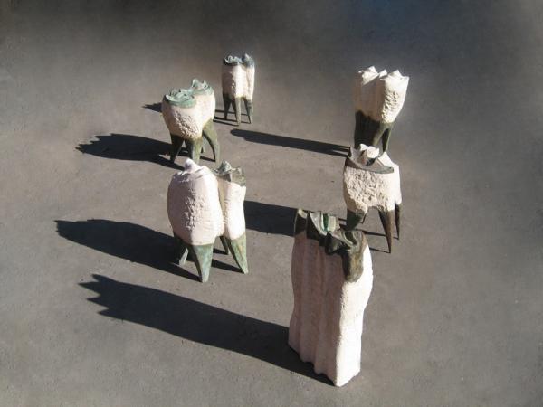 Bronz patinat si piatra, 6 piese, aprox 50x40cm.
