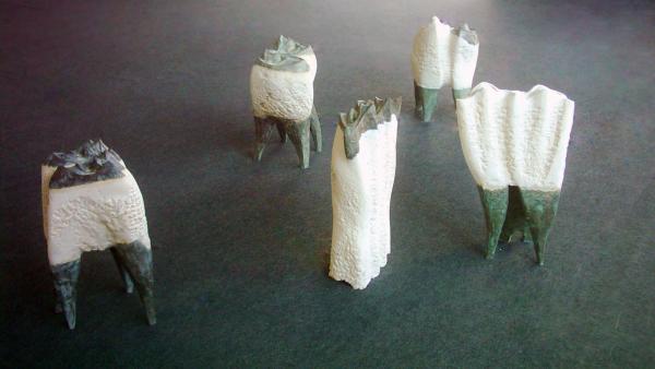 Bronz patinat si piatra, 6 piese, aprox 50x40cm.
