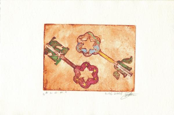 gravura/ hartie, acuarela 25 cm x 18 cm